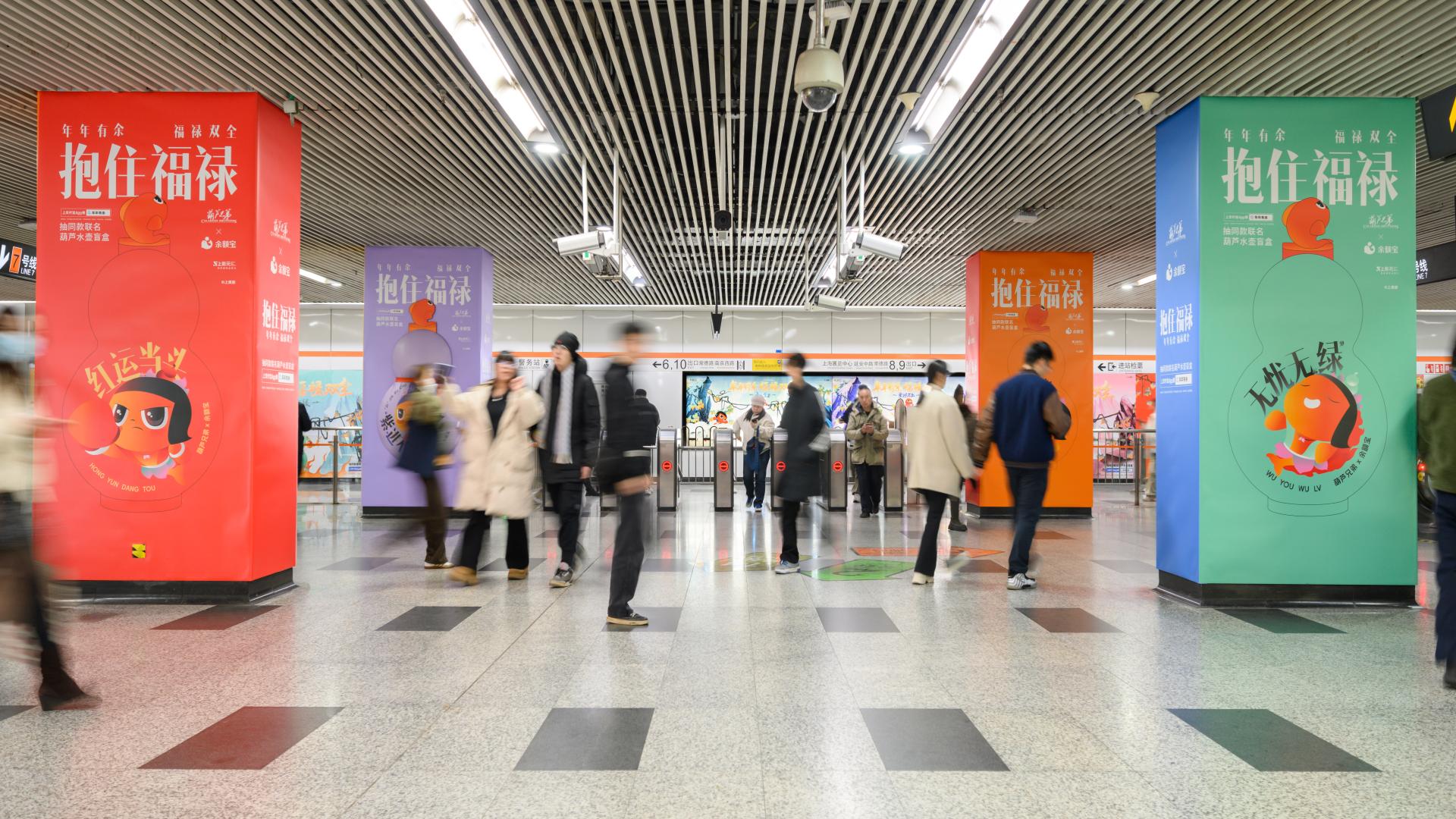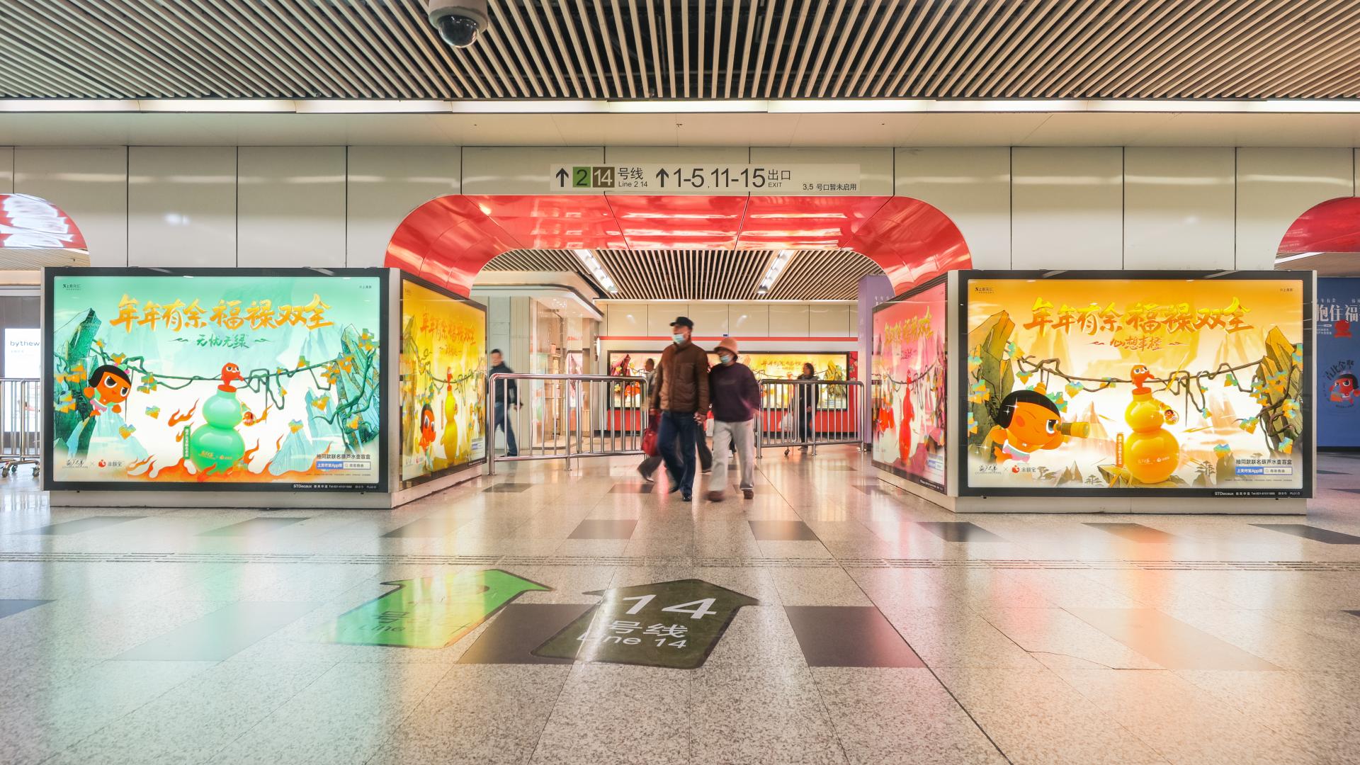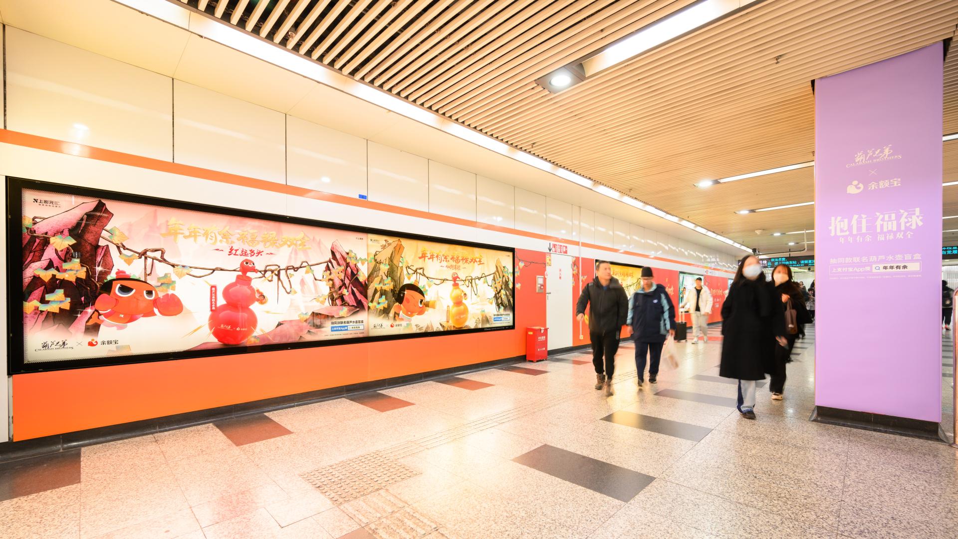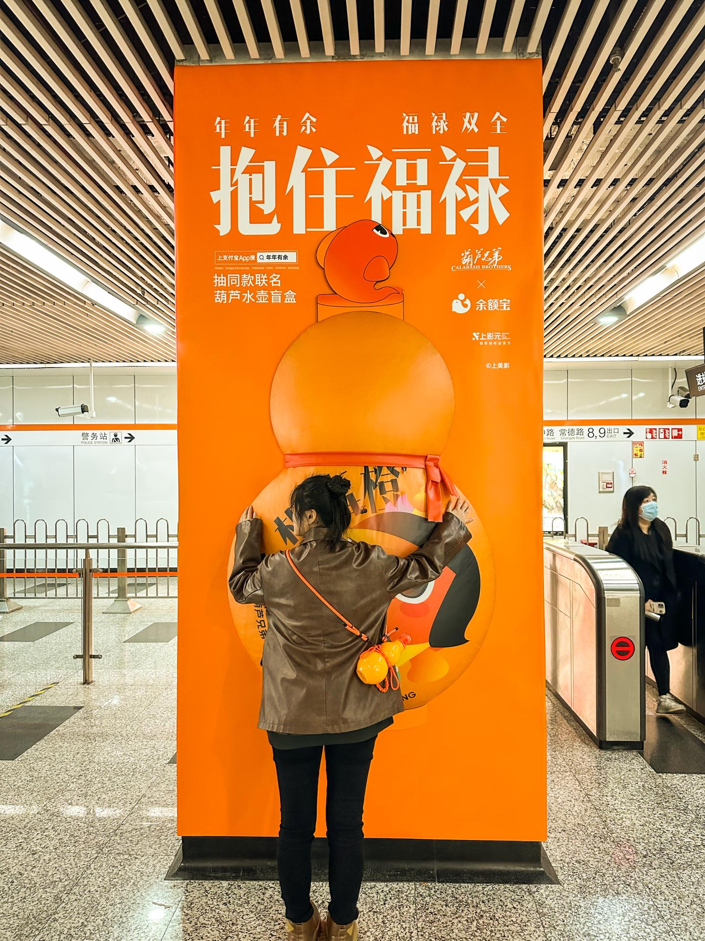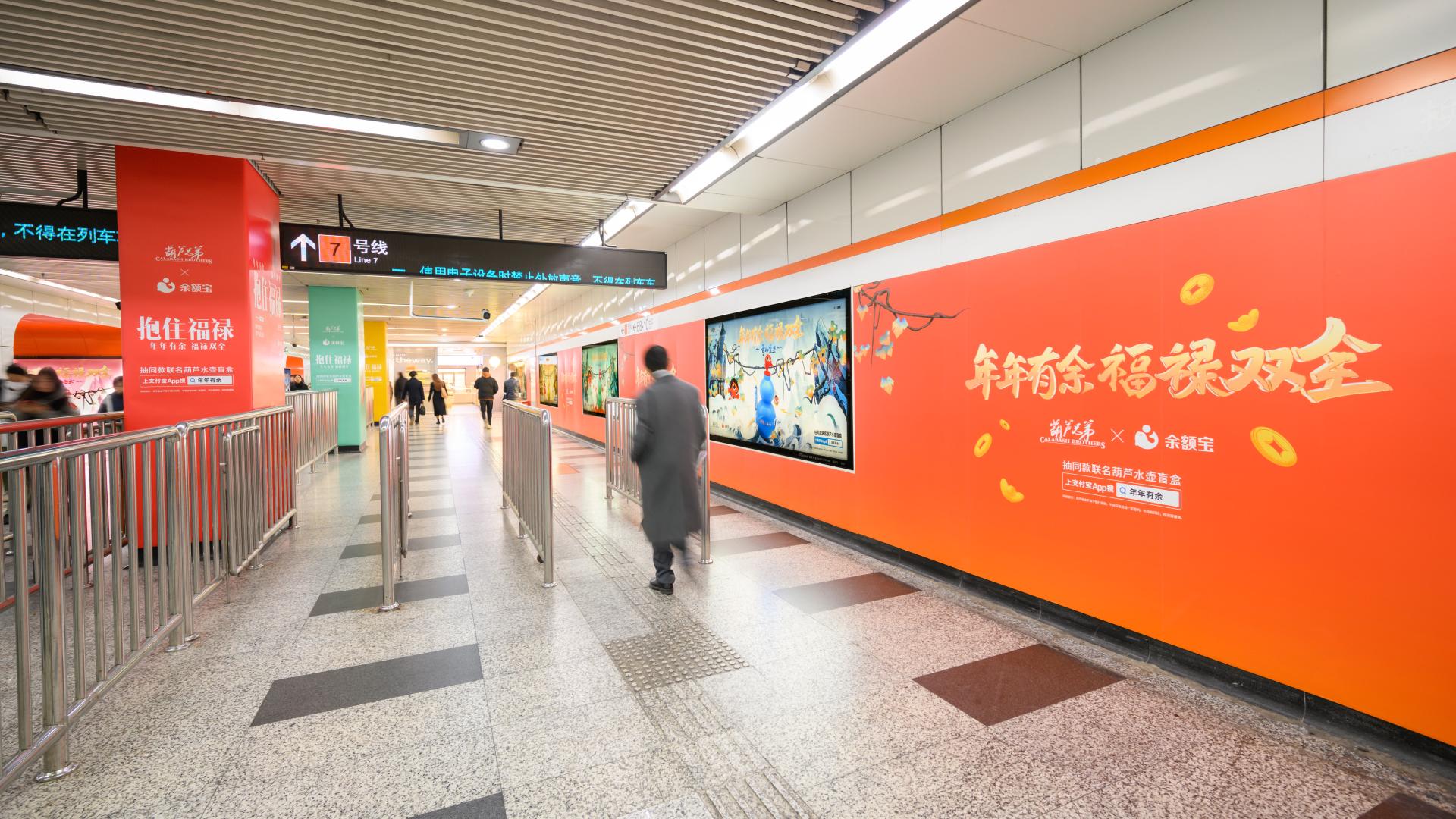 结合当下年轻人中流行的寺庙文化,余额宝选择上海地铁7号线静安寺站进行创意广告投放,同时希望在年尾给大家送上“年年有余,福禄双全“的新年祝福~