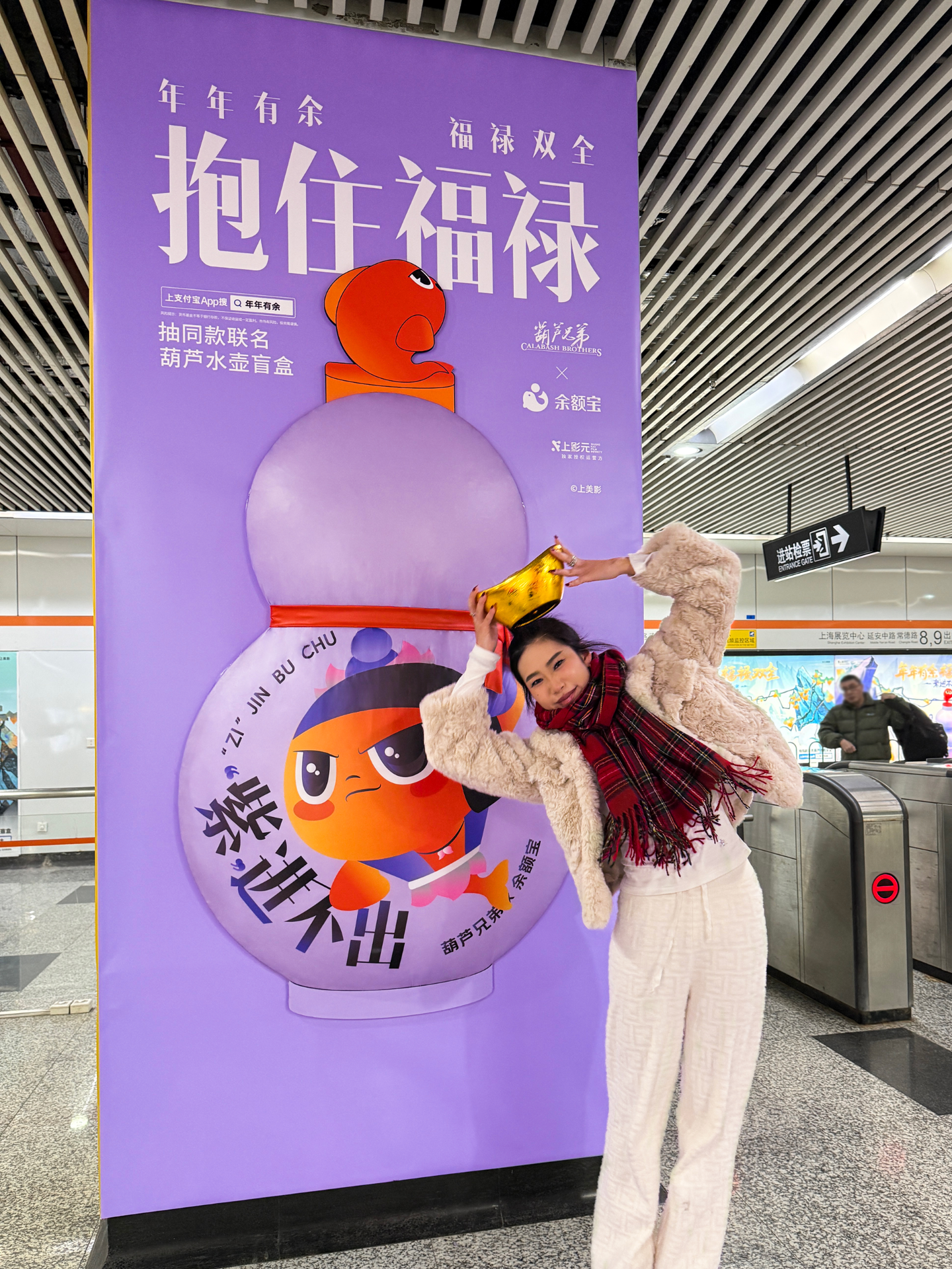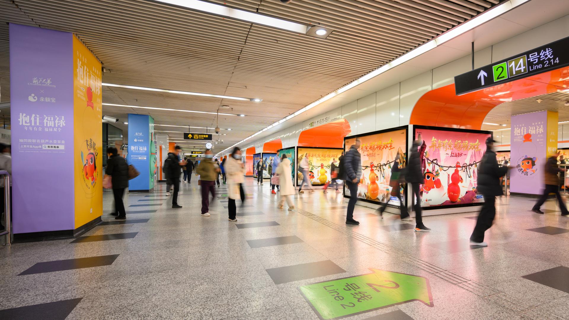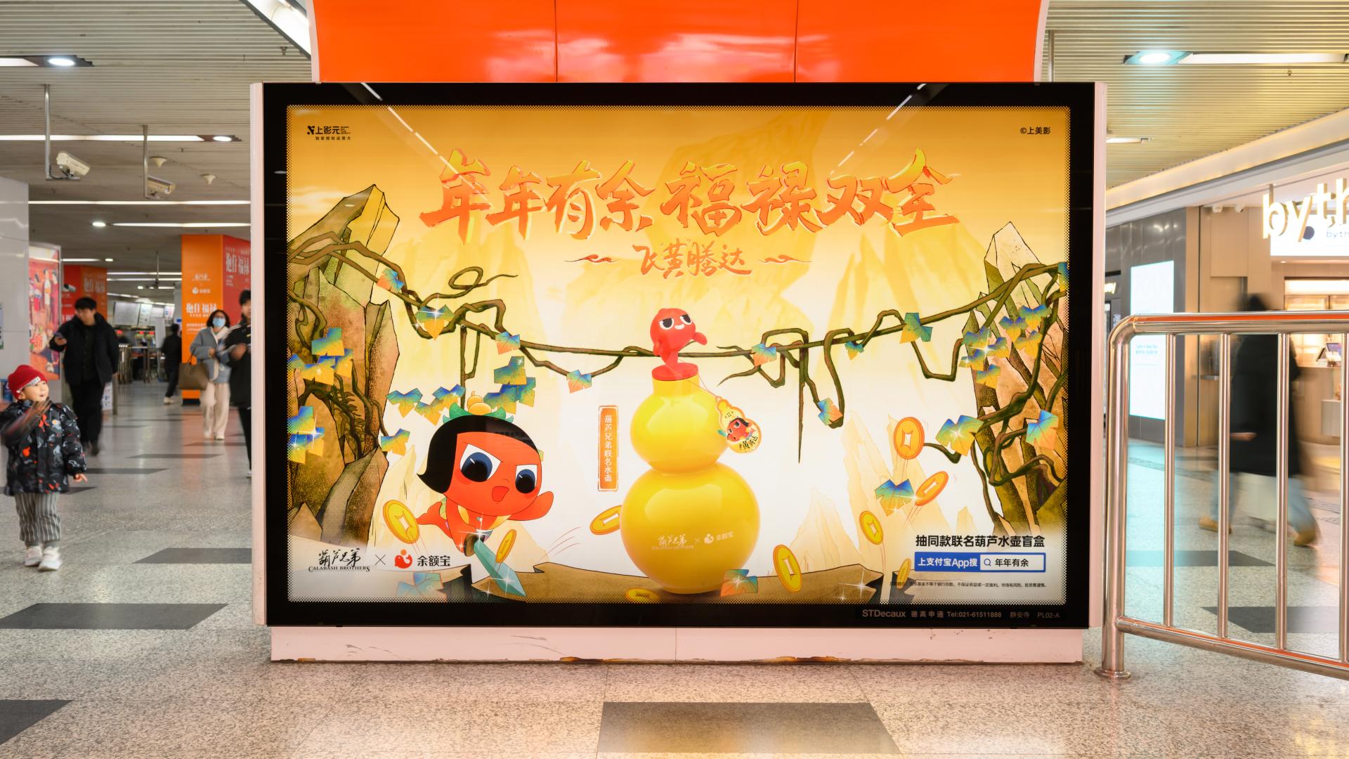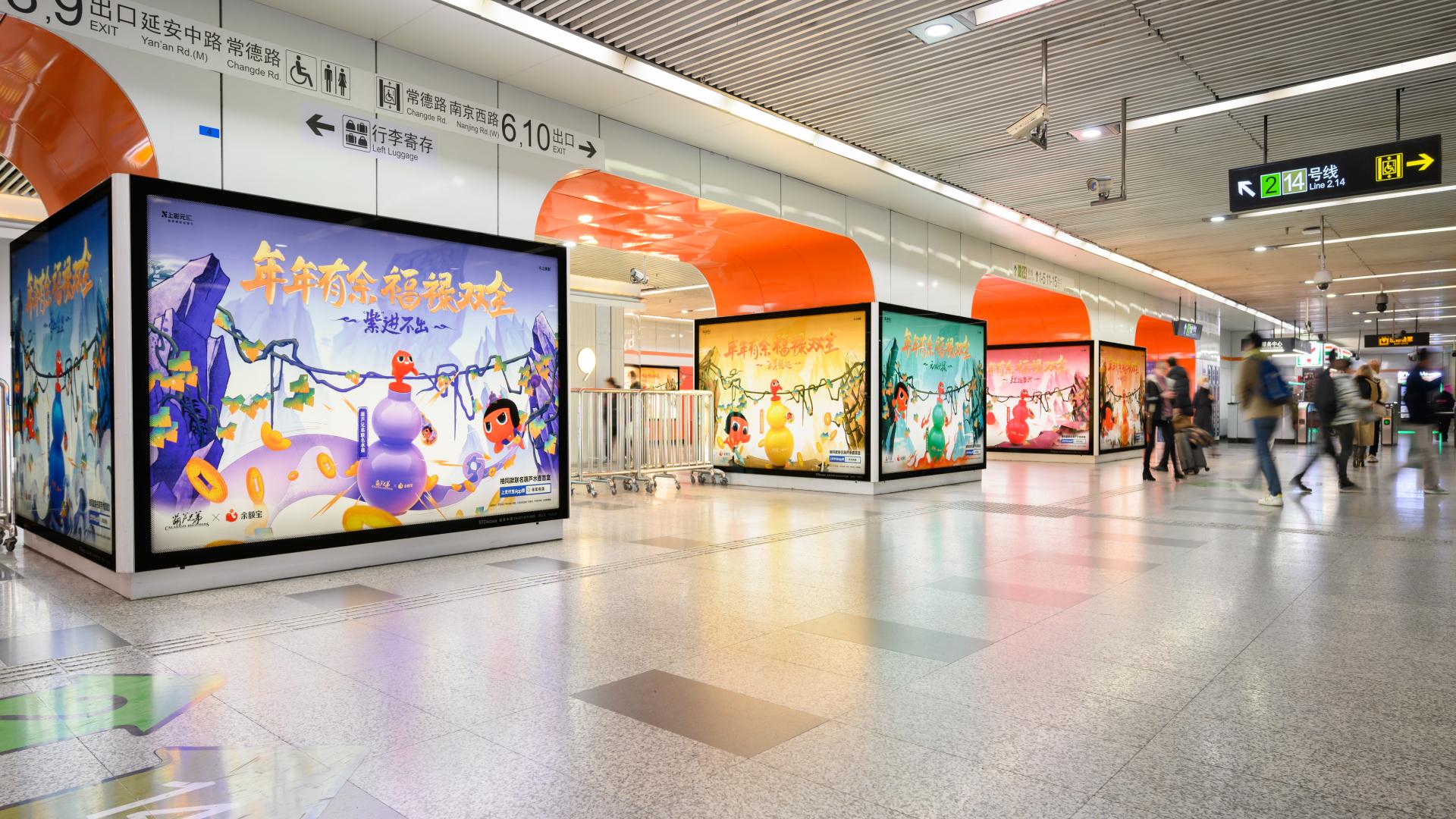 结合当下年轻人中流行的寺庙文化,余额宝选择上海地铁7号线静安寺站进行创意广告投放,同时希望在年尾给大家送上“年年有余,福禄双全“的新年祝福~