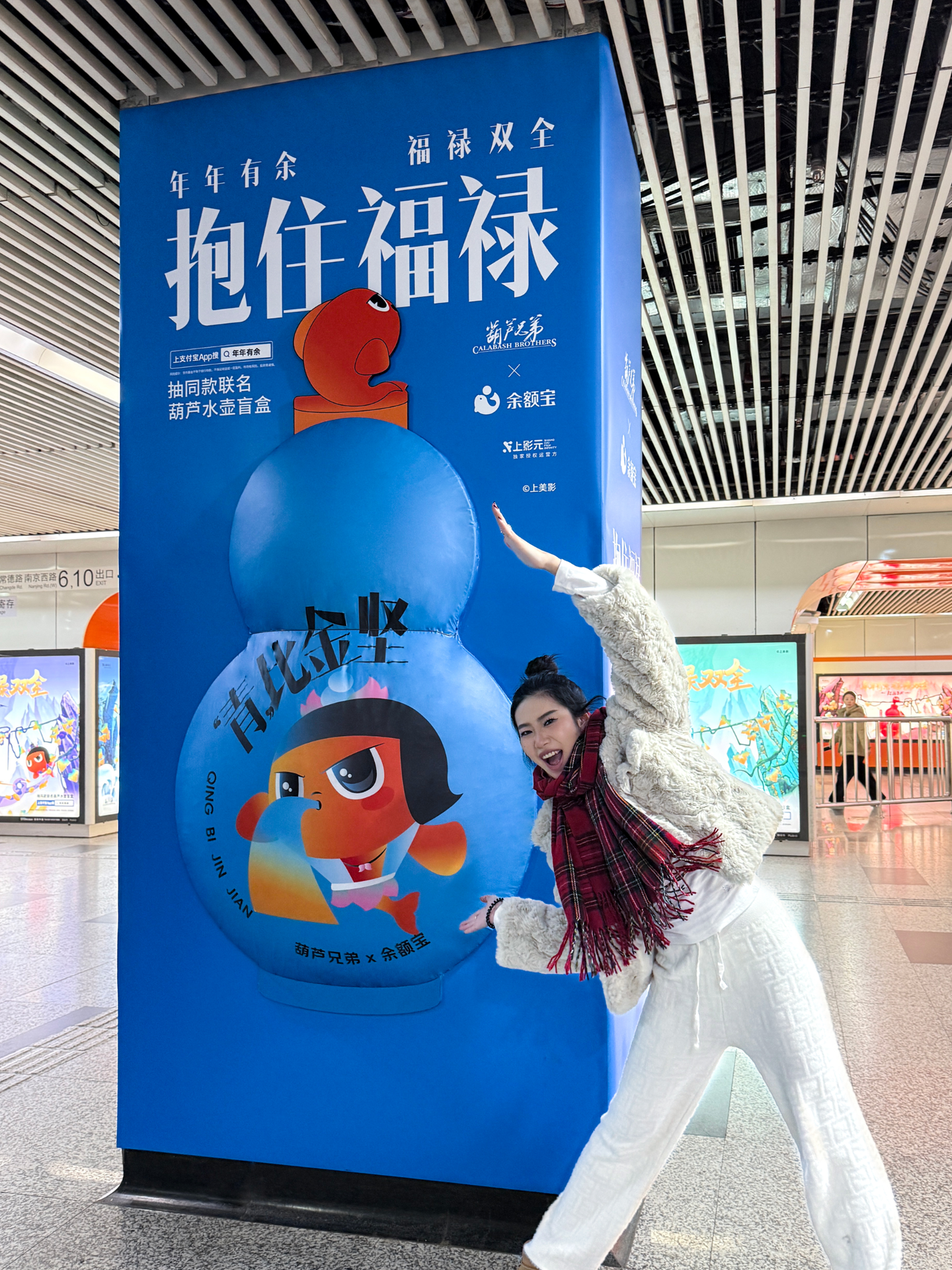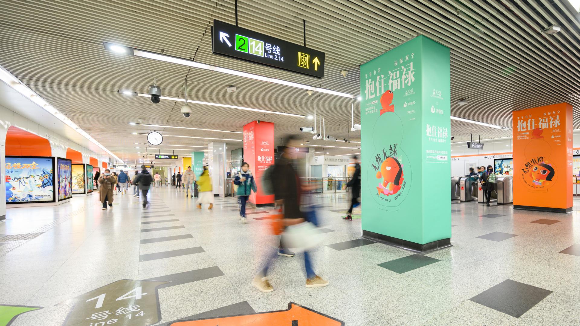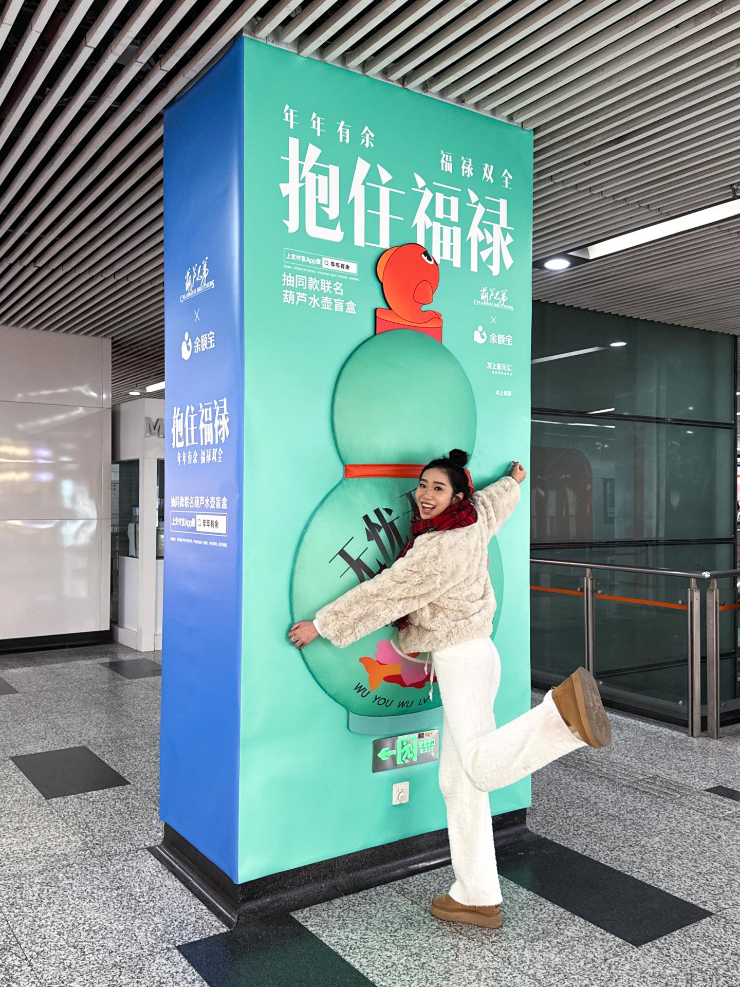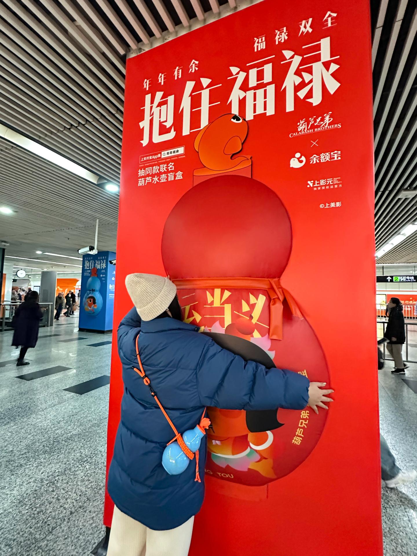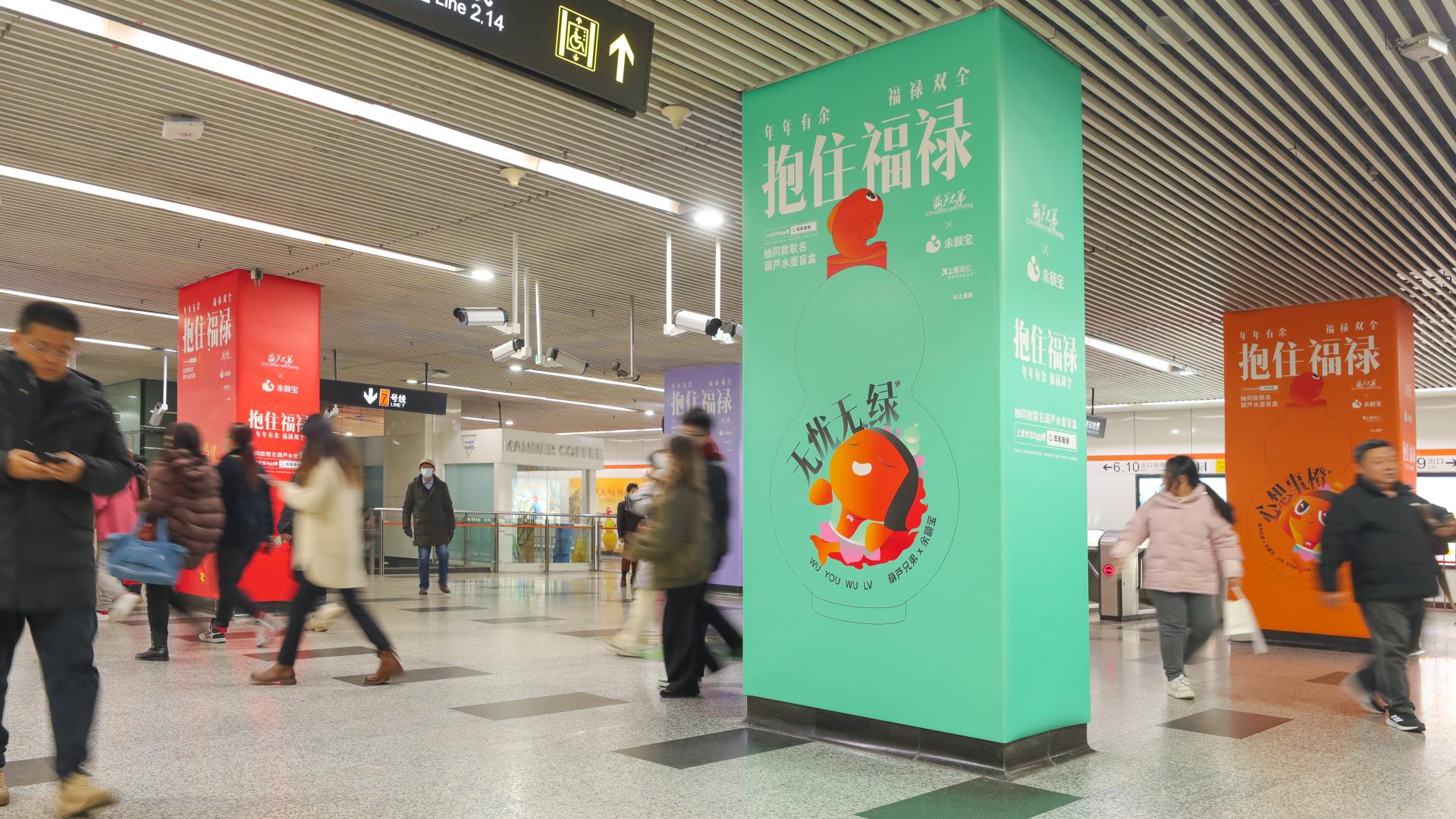 结合当下年轻人中流行的寺庙文化,余额宝选择上海地铁7号线静安寺站进行创意广告投放,同时希望在年尾给大家送上“年年有余,福禄双全“的新年祝福~